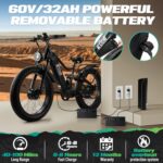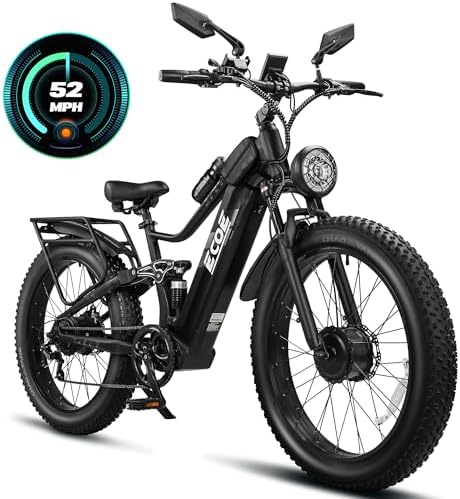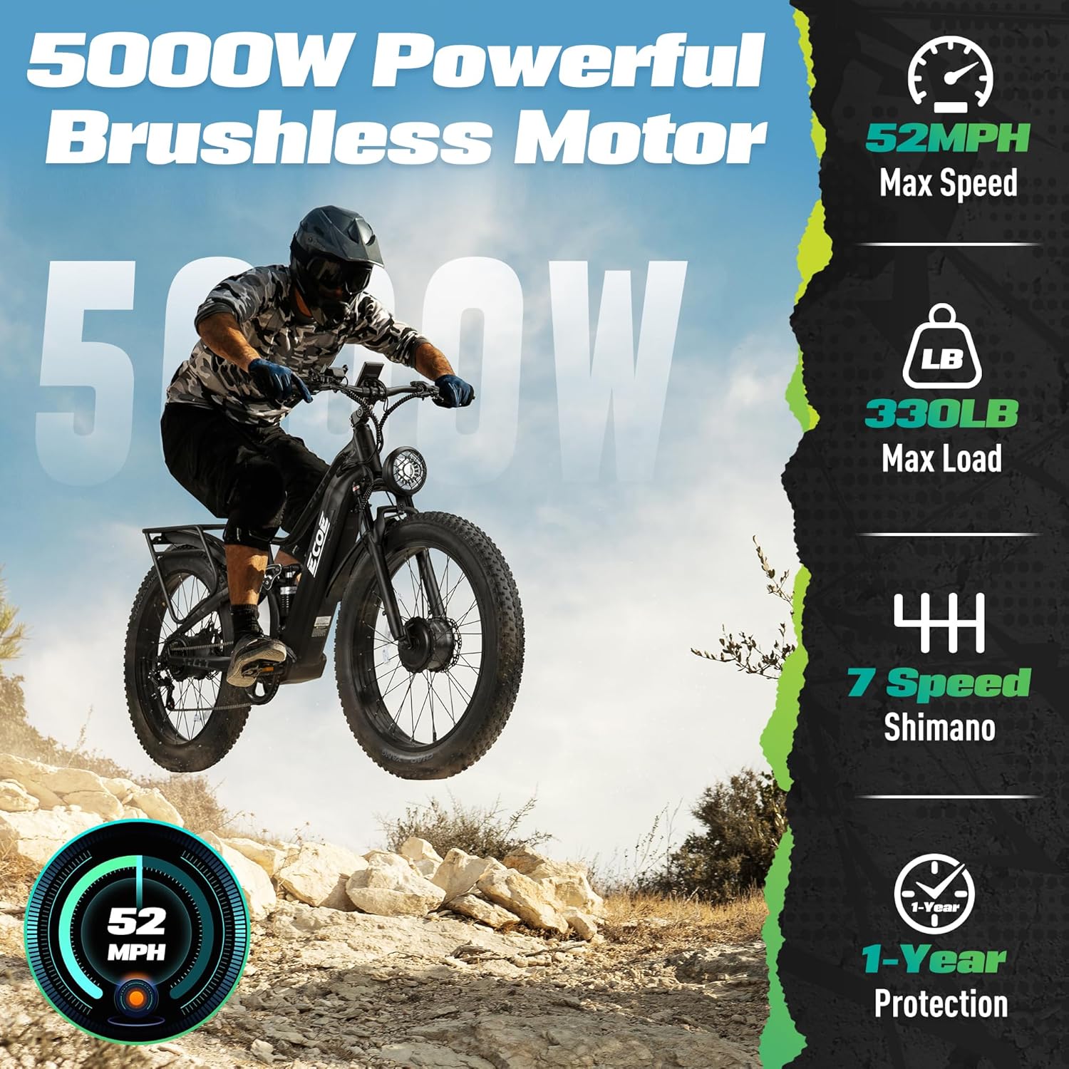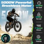 5000W Dual Motor Electric Bike for Adults 52MPH with Charge Voltage 63V, 26×4 Fat Tire All Terrain Ebikes, Full Suspension E Bike, SHM 7-Speed Gear Electric Bicycle(Charge Voltage 63V)