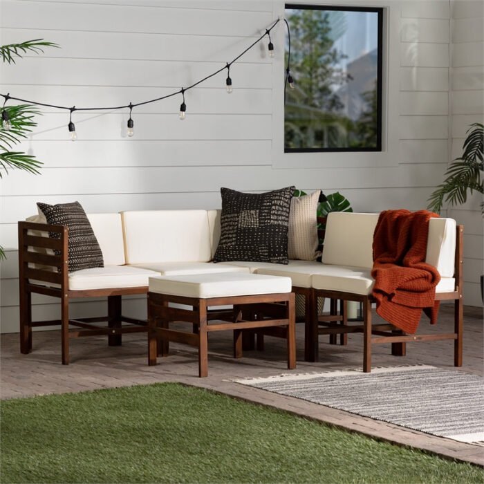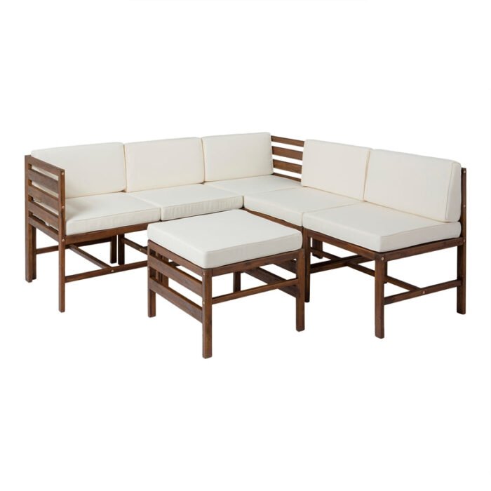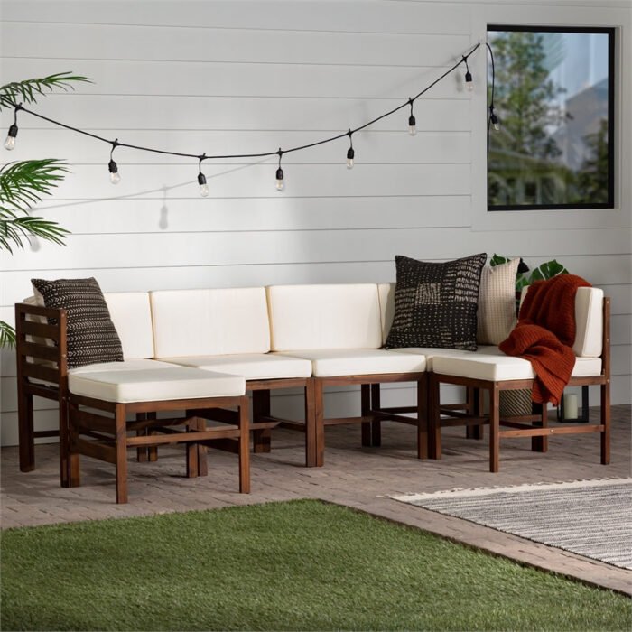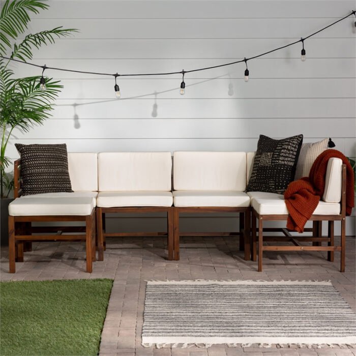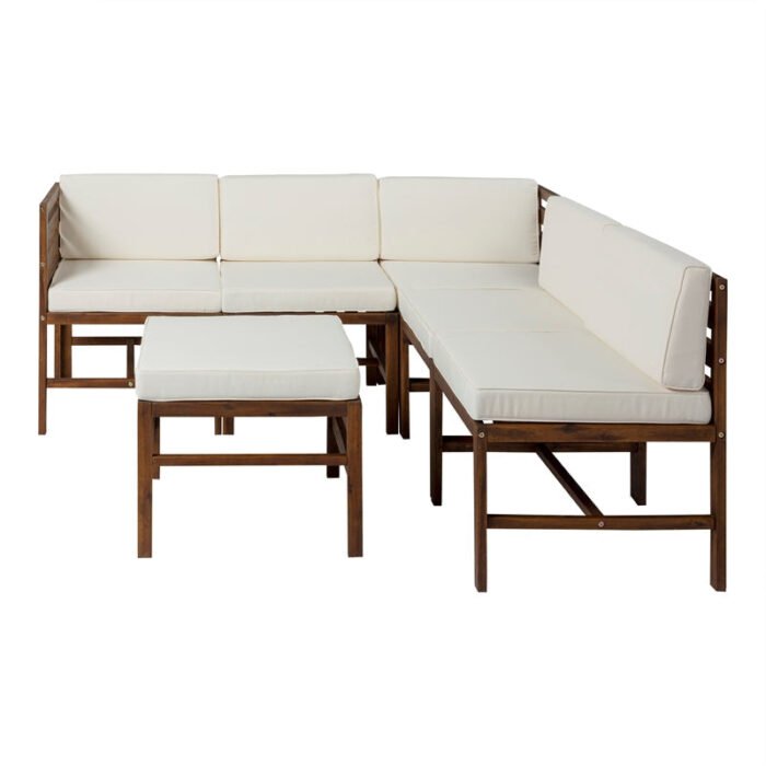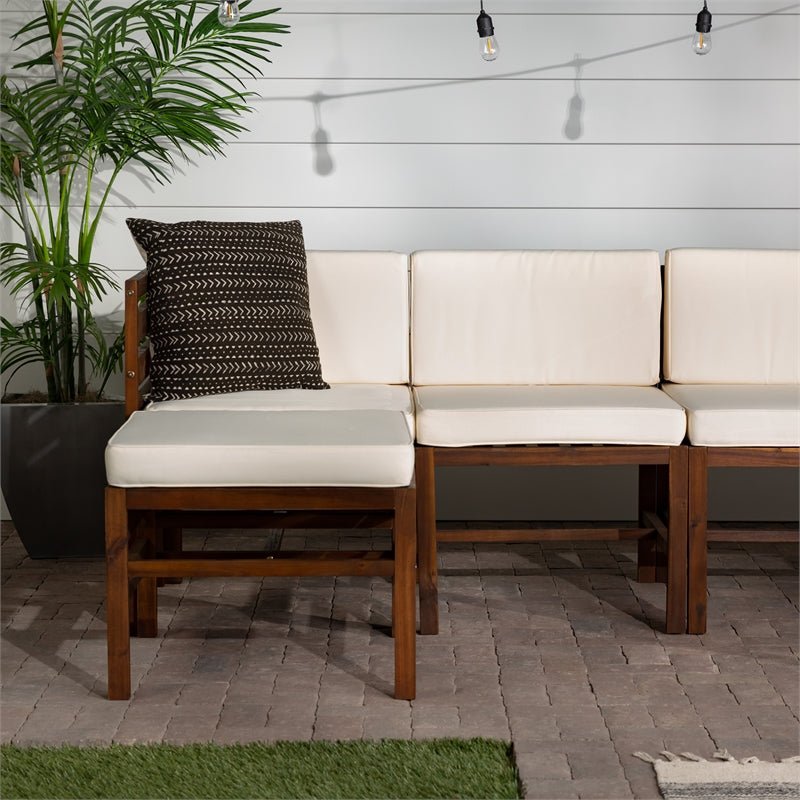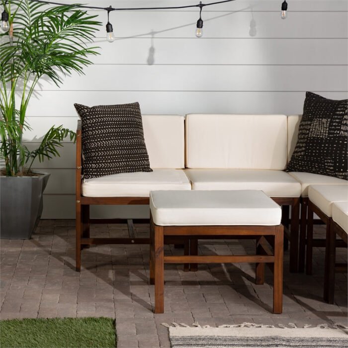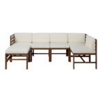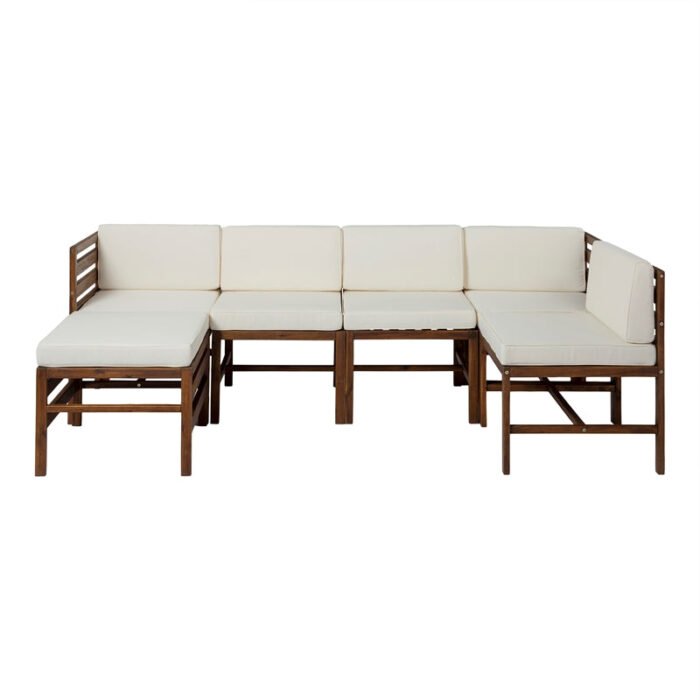 6-Piece Modular Acacia – 5 seat + Ottoman – Dark Brown
