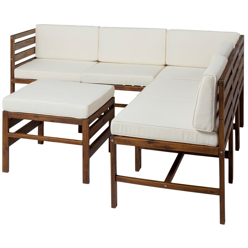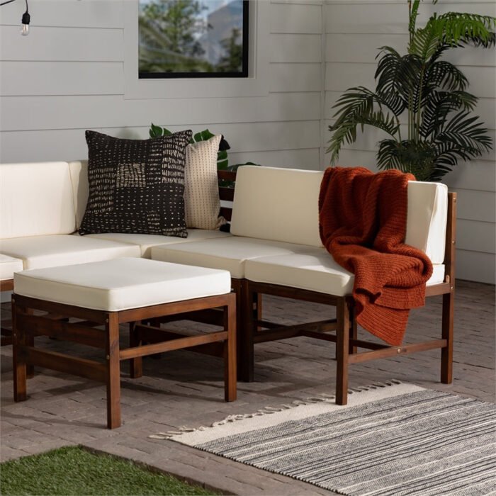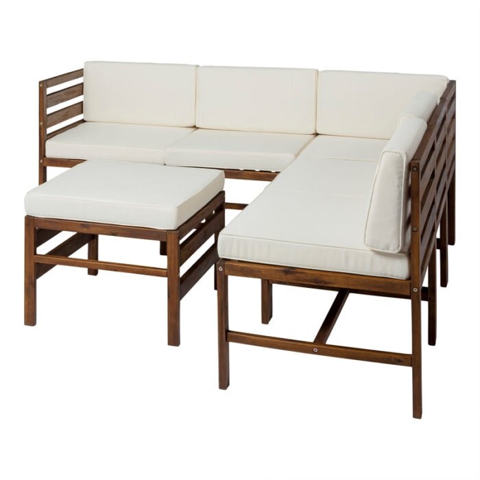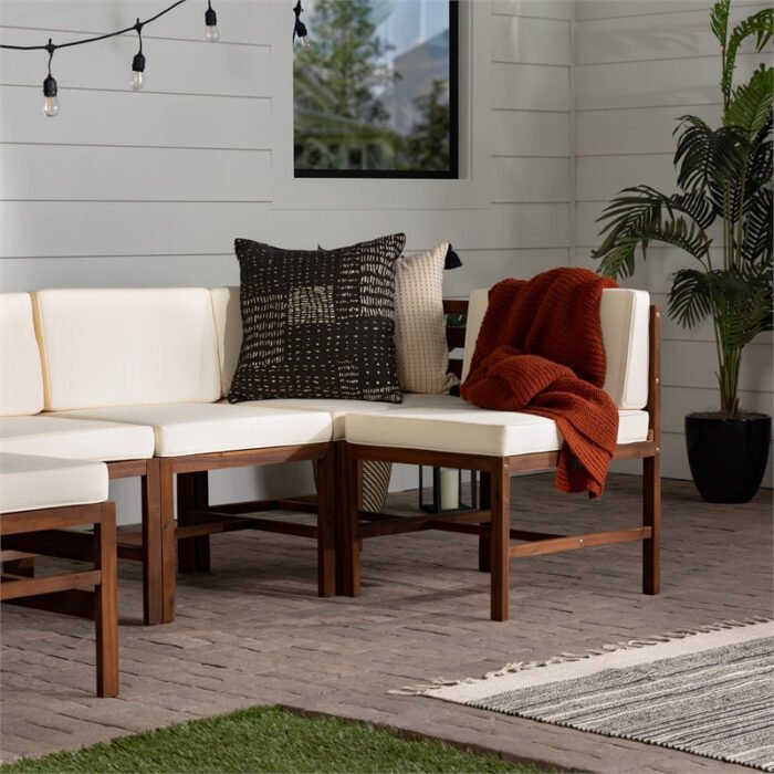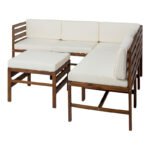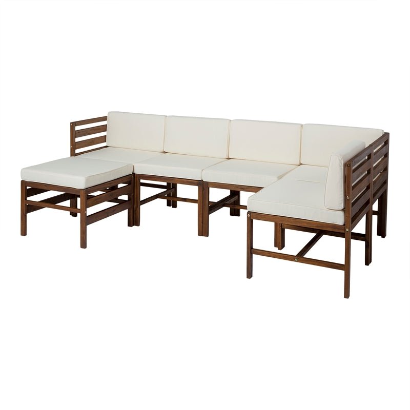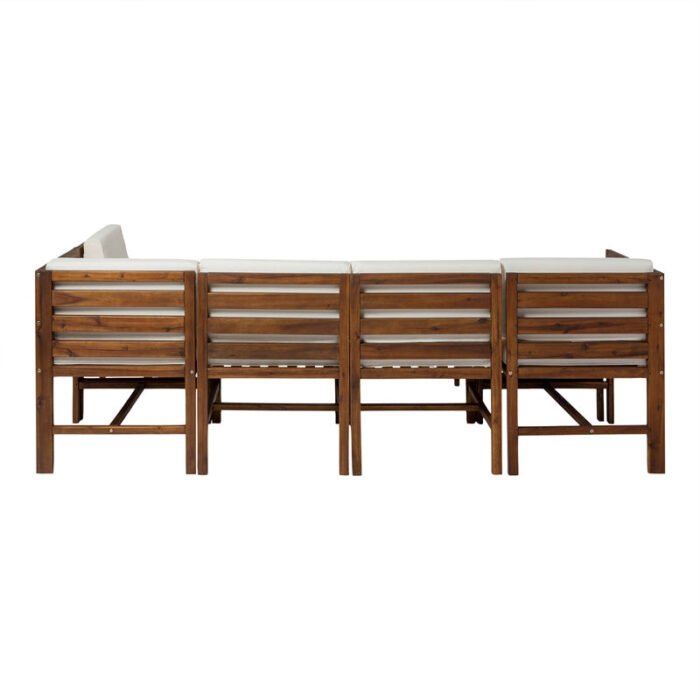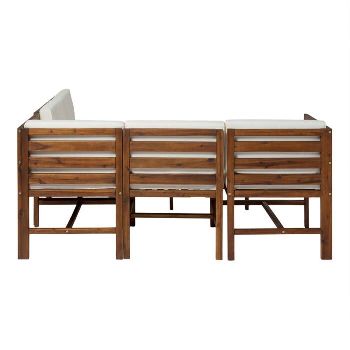 6-Piece Modular Acacia – 5 seat + Ottoman – Dark Brown