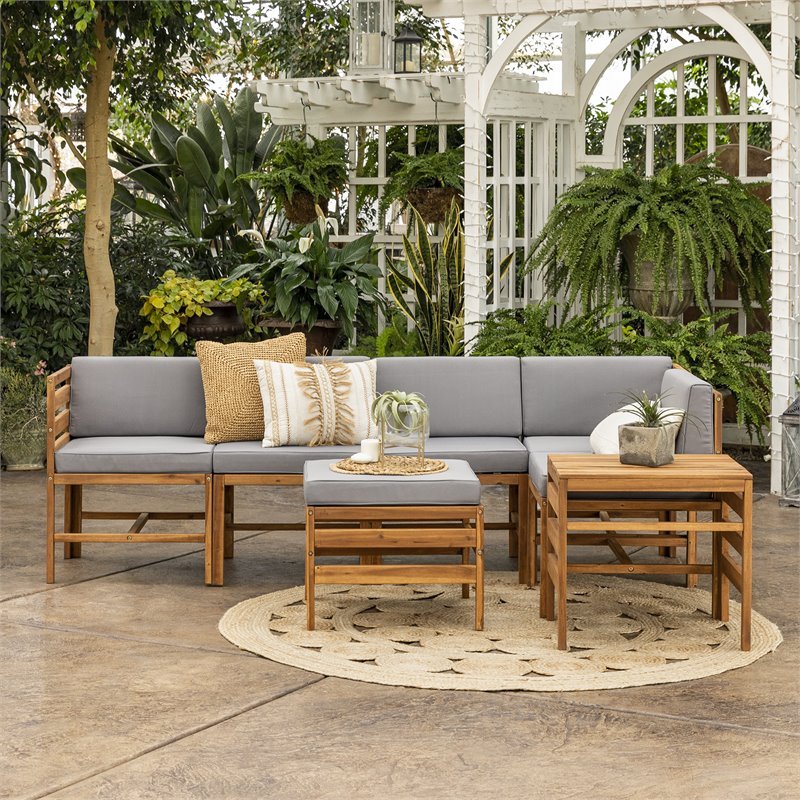 7-Piece Modular Acacia – 5 seat + Ottoman + side table – Brown