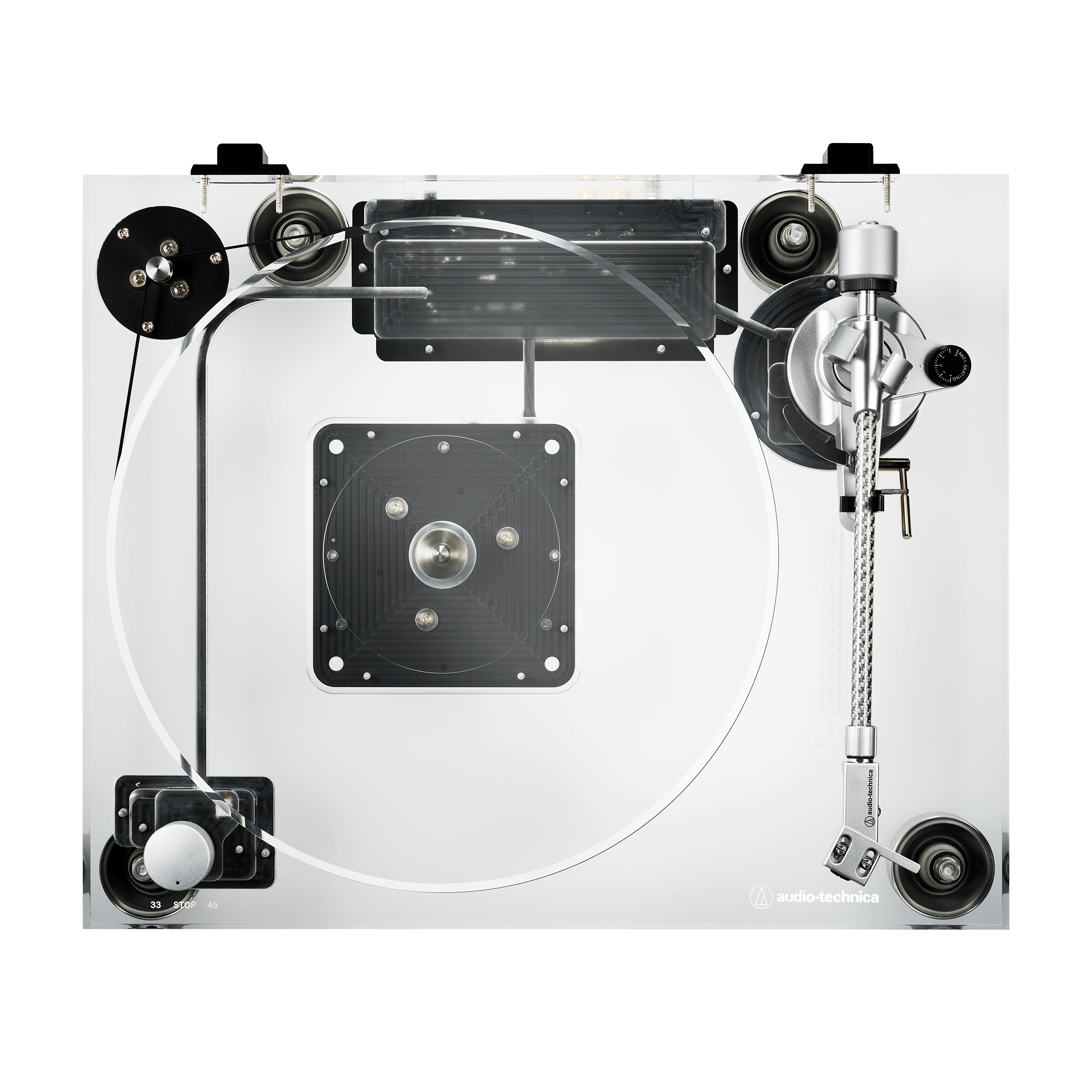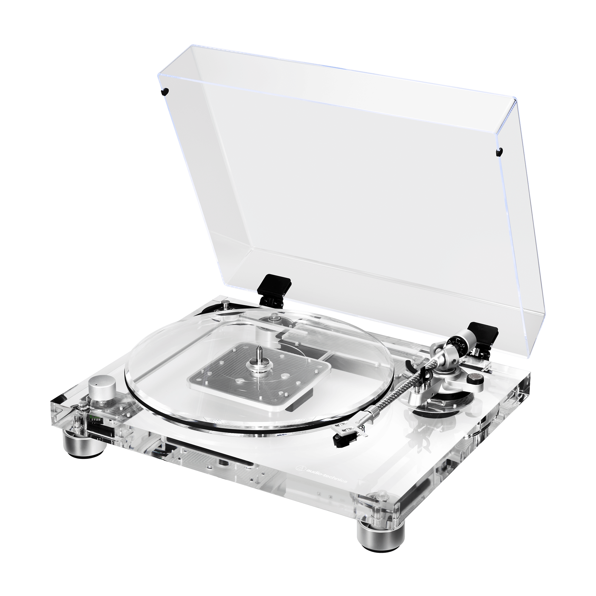 - Transparent acrylic platter for stable rotation