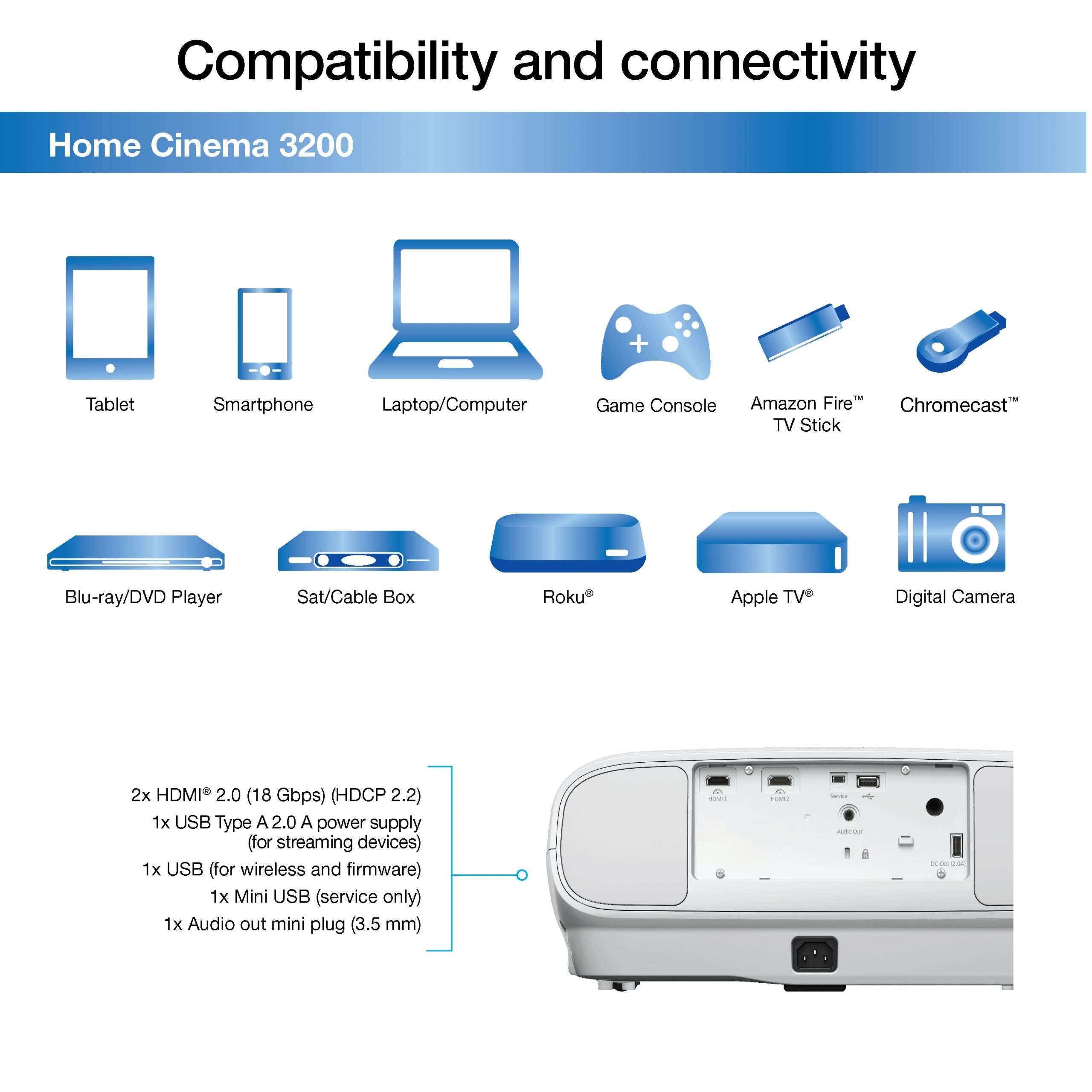 Epson® Home Cinema 3200 4K PRO-UHD®1 3-Chip Projector with HDR2