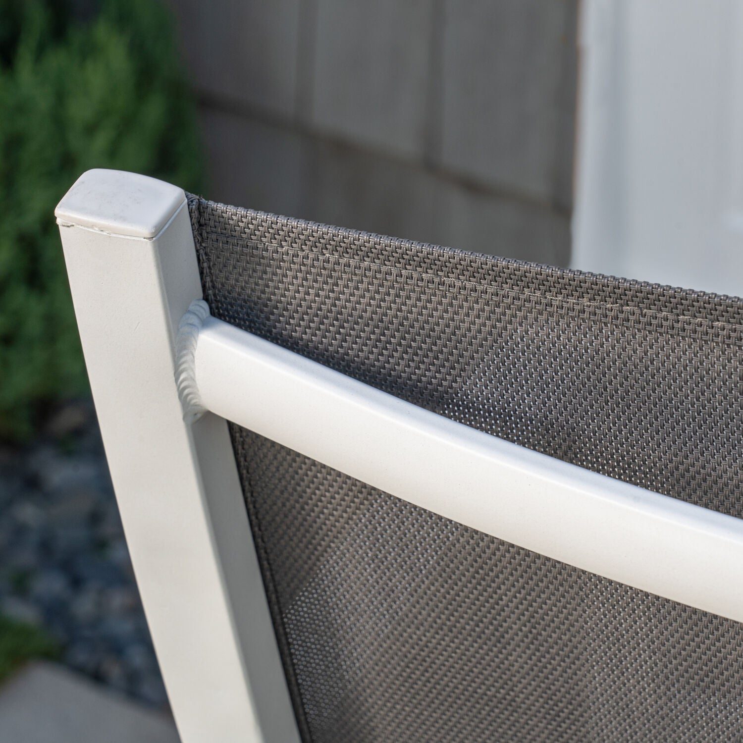 Made with rust-resistant and weather-resistant aluminum frames, this stylish dining set is produced with high-performance powder coating, which protects it from rust, scratches and harmful UV rays. Designed for comfort and durability for long lasting use to enjoy for many years.