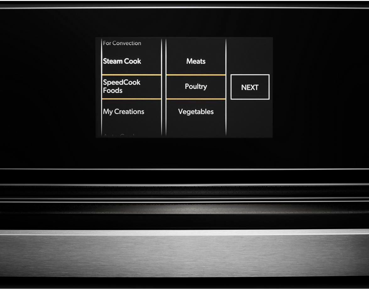 Beyond a veil of dark glass in the lower cavity, the power of the MultiMode® convection system caresses every morsel with even heat. Above, let your appetite run wild with microwave and convection energy. With curated recipe presets and full-color images, an intuitive, guided culinary experience awaits your touch.