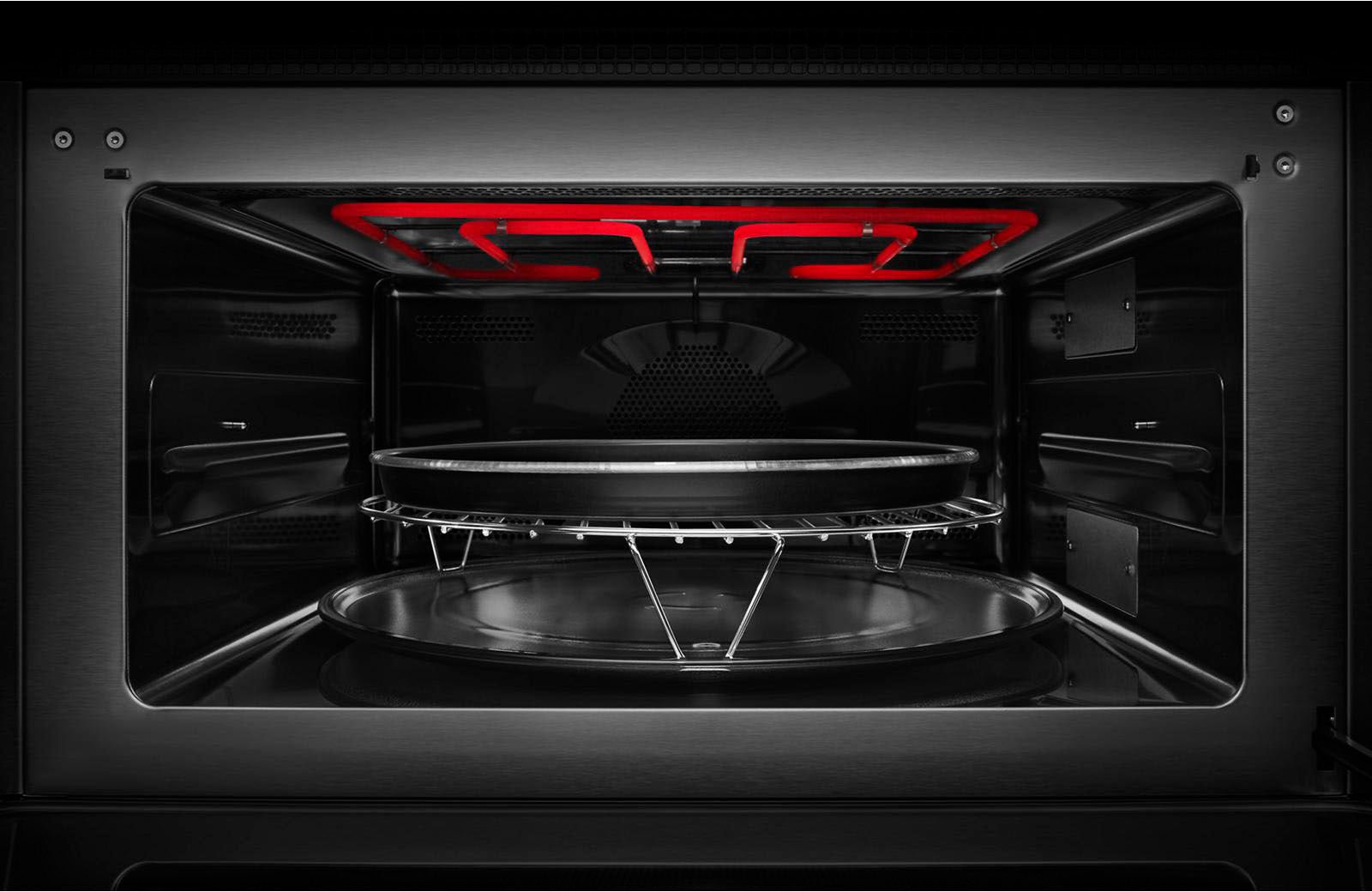 Indulge in tastes and textures unattainable with microwave technology alone. Working together with a crisp pan, this element grills, toasts, and browns.