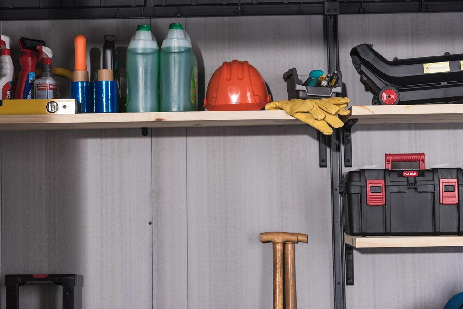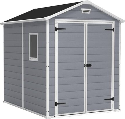 Store your lawn and garden tools all in one place with a modern aesthetic with the Keter Artisan 7 x 7 Foot Large Outdoor Shed. Whether you’re storing your bike, lawnmower, or other essential items, this backyard shed provides all-around protection. The double doors allow for easy access within, but they are lockable for added security. The bottom floor panels also ensure the items within are sturdy from weather-like elements by keeping them nice and dry. Plus, we all know it could get stuffy inside a shed, and therefore the fixed crystal clear windows let in natural light and display plenty of airflow. Constructed from wood-look plastic, this all-weather shed can withstand all the elements. Therefore, experience virtually zero maintenance, as this ultra-durable storage device will not peel, rust, rot, or decay. When assembling the shed, simply use easy common household tools for a hassle-free and easy setup process. Easily add a shade of paint that matches your house, landscape, or outdoor area, or brighten things up with the perfect pop of color. Keep your outdoor tools nice and organized with the Keter Artisan 7 x 7 Foot Large Outdoor Shed while bringing class and uniformity to your yard.