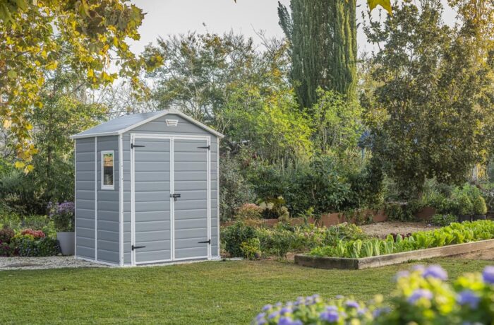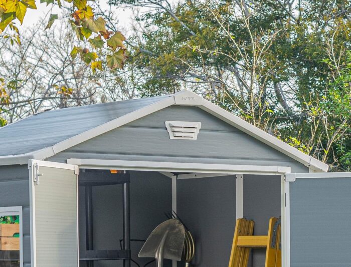 Lawnmower, garden tools, extra hoses, fertilizer bags and those leftover bricks from your patio project… what do all these items have in common? They’re all cluttering up your basement or your garage, and you’re tired of dragging them out into the yard every time you need to use them. The solution to your problem just might be the Manor 4 x 6 outdoor storage shed from Keter. This sturdy shed won’t ever rot, peel or dent, unlike its wooden and metal competitors. Furthermore, the double door at the front of the shed makes it easy to get big items in and out of without strain or hassle.