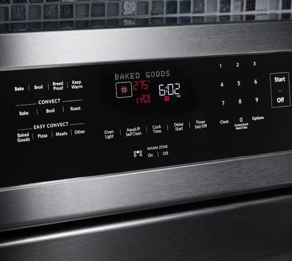 This versatile electric freestanding range produces flawless cooking results with Even-Heat™ True Convection. The unique bow-tie design and convection fan ensure the inside of the entire oven is heated to, and stays at, the perfect temperature. The cooktop features five heating surfaces, including a dedicated warming zone, allowing you to do more on your range.