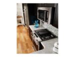 A bold blend of professionally inspired styling with sleek touches for the home. This microwave oven features satin textured handles, precision glass touch controls, a chrome inlaid frame. -