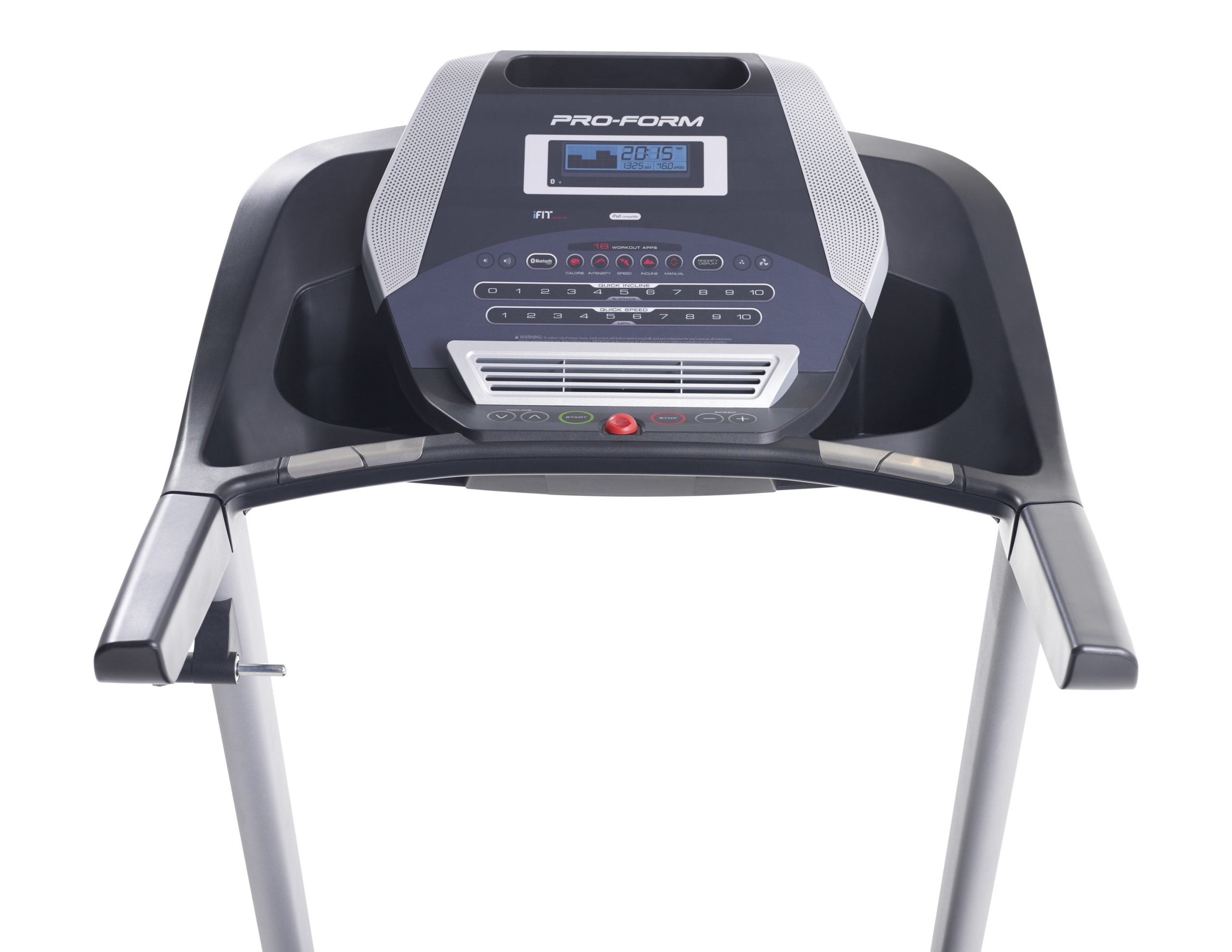 Featuring ProShox cushioning, the ProForm 520 ZNi Treadmill delivers a more comfortable run and reduces the impact on your joints. Take advantage of iFIT Bluetooth Smart technology and connect to your iFIT account (sold separately) and experience world-class personal training in your home. iFIT gives you access to an ever-expanding library of workouts led by elite personal trainers in both studio and global locations, personalizing your experience as you go. Take control of your training with Digital QuickSpeed and Incline controls; adjust your speed up to 10 MPH and get up to 10% incline grade with the push of a button. Your machine’s large, easy-to-read LCD Window Display allows you to keep track of your stats as you train, honing in on your target heart rate and maximizing your calorie burn. Stay entertained with a built-in audio system that can connect to your own tablet or smartphone (not included) and allows you to blast your favorite workout playlist as you run. A 2.5 CHP* Mach Z motor delivers a powerful and quiet workout with every use, and a revolutionary SpaceSaver design means you can fold your treadmill deck up and walk away – all in one easy step.