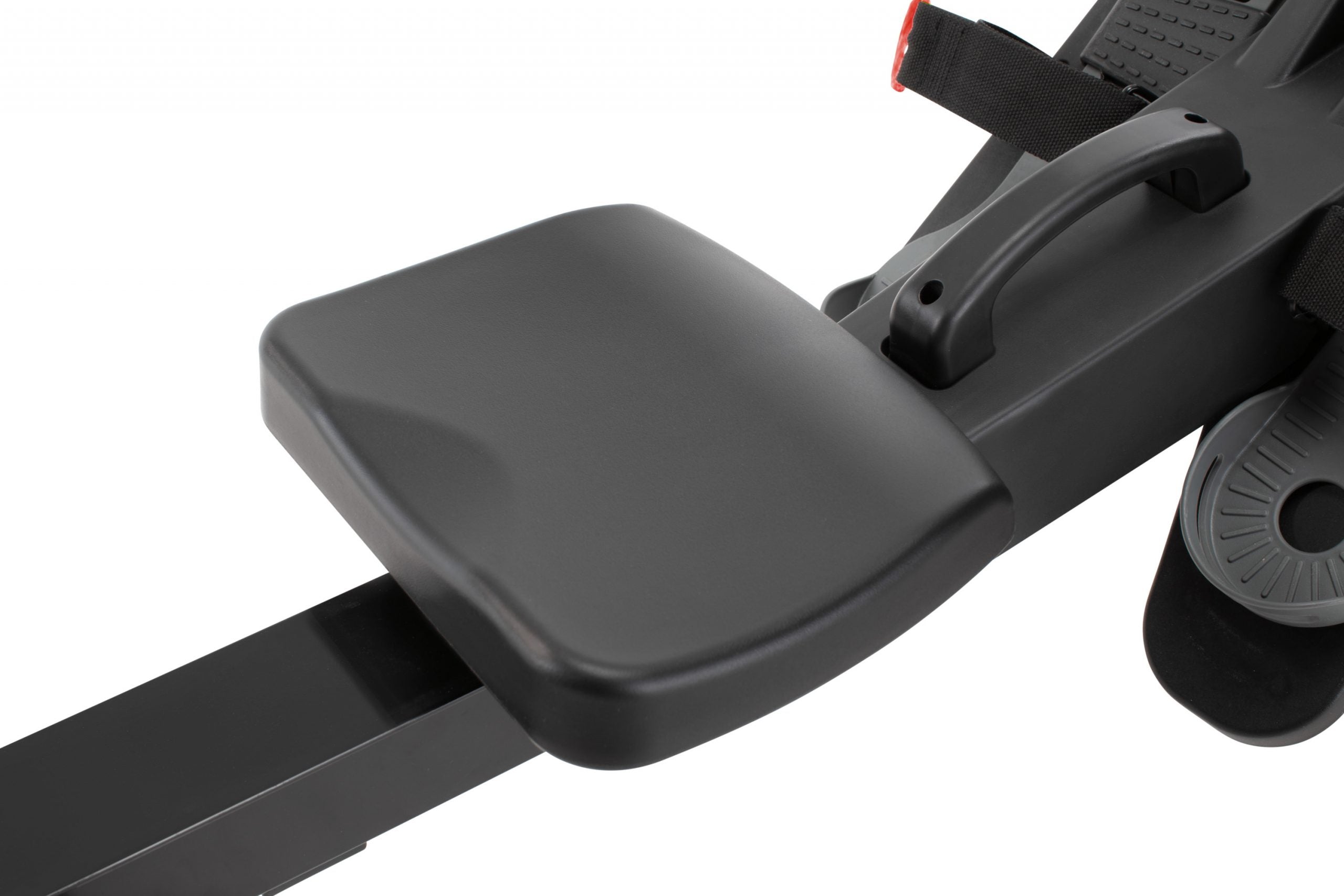Moving this rower out of the way is fast and easy with the front-mounted wheels.